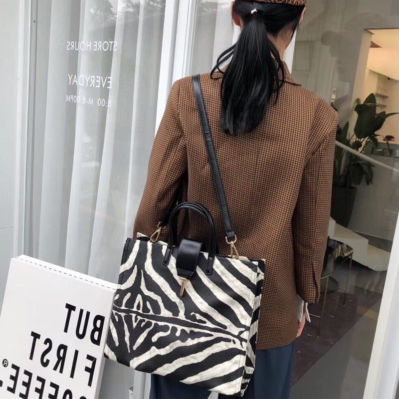 Sac Bandoulière Décontracté en Cuir à Motif Zèbre