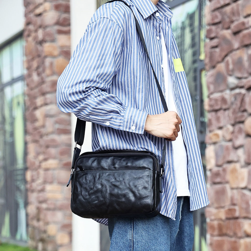 Sacoche Messager à Fermeture Eclaire de Luxe en Cuir